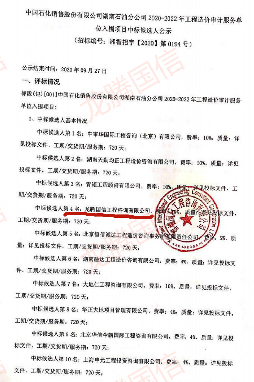恭賀我公司中標‘中國石化湖南石油分公司2020-222年工程造價審計機構庫’