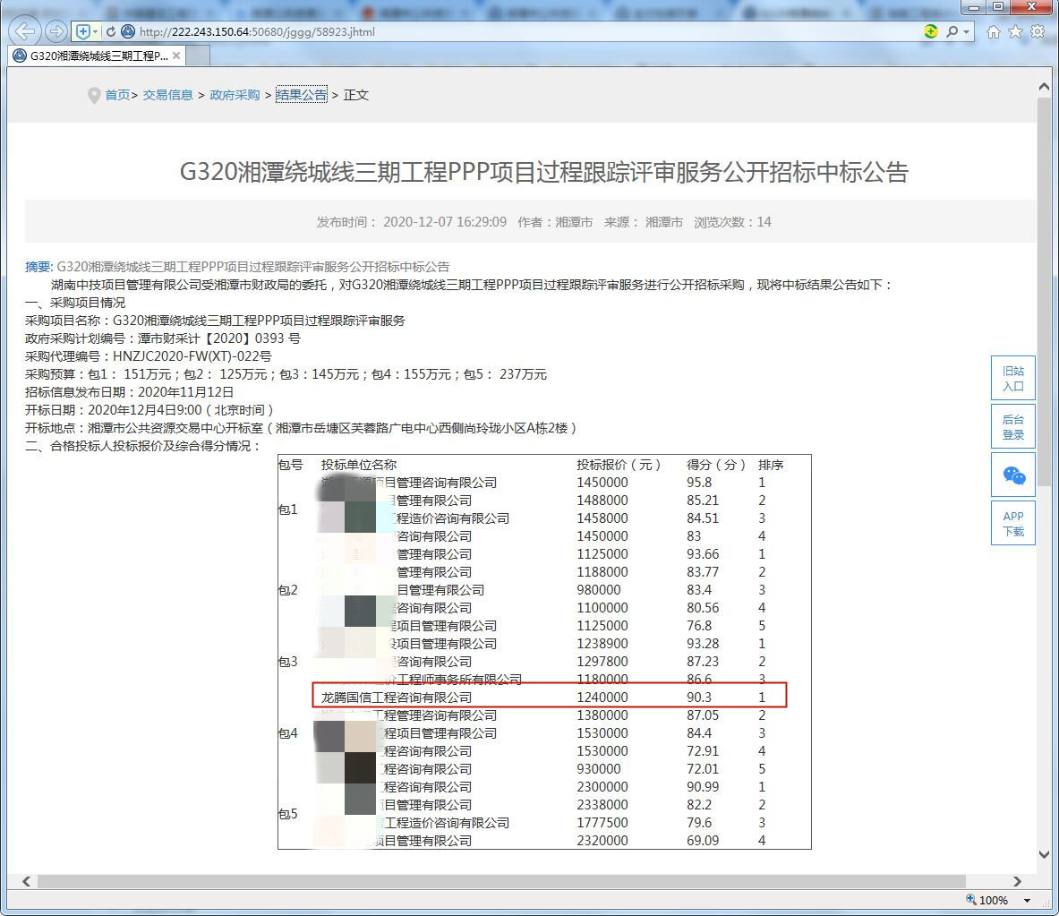 恭賀我司中標(biāo)G320湘潭繞城線三期工程PPP項(xiàng)目過程跟蹤評審服務(wù)
