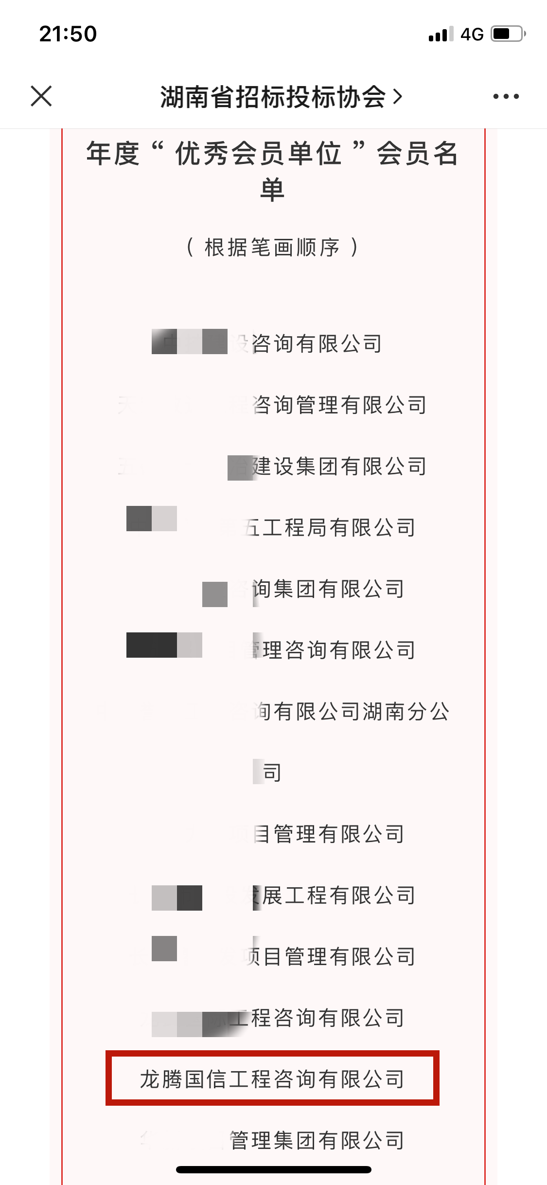 近日,在湖南省招標(biāo)投標(biāo)協(xié)會組織的表彰通告中,龍騰國信工程咨詢有限公司榮獲“2020年度優(yōu)秀會員單位”。同時,公司李超先生獲協(xié)會“優(yōu)秀特約聯(lián)絡(luò)員”稱號。