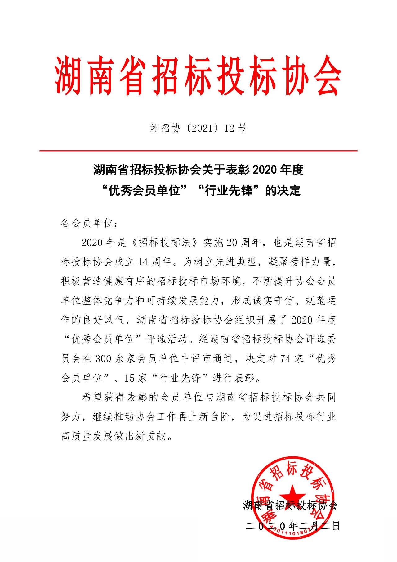 恭賀我公司榮獲2020年湖南省招標(biāo)投標(biāo)協(xié)會優(yōu)秀會員單位