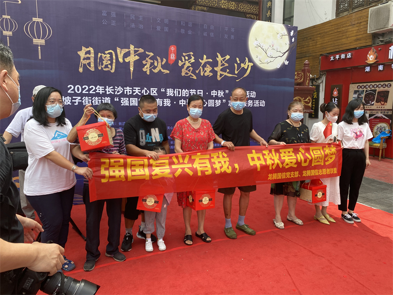 龍騰國信黨支部、龍騰國信志愿者聯(lián)盟近日在長沙市天心區(qū)太平街古戲臺(tái)作為協(xié)辦單位,開展四季同行雷鋒家鄉(xiāng)學(xué)雷鋒天心區(qū)文明實(shí)踐志愿服務(wù)“滿天星”行動(dòng)暨坡子街街道“強(qiáng)國復(fù)興有我,中秋愛心圓夢(mèng)”志愿服務(wù)活動(dòng)。
