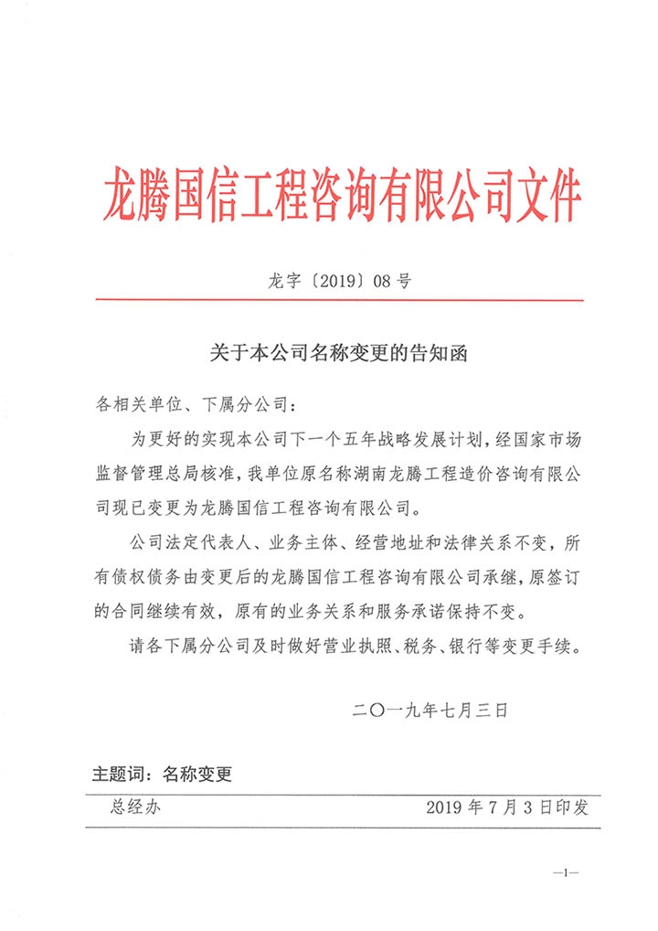 關(guān)于本公司名稱變更的告知函