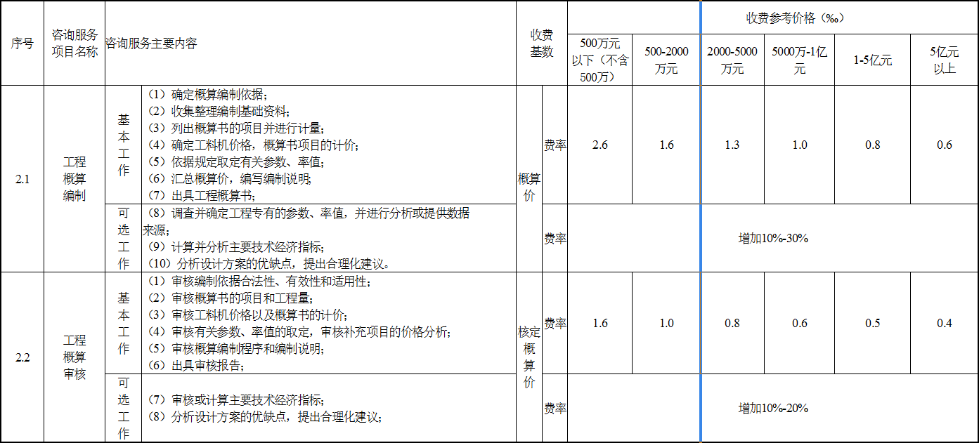 附件:造價咨詢行業(yè)咨詢服務收費參考價格表