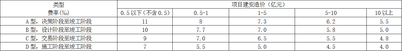 全過程造價咨詢服務收費參考價格表(不含駐場人員收費價格)