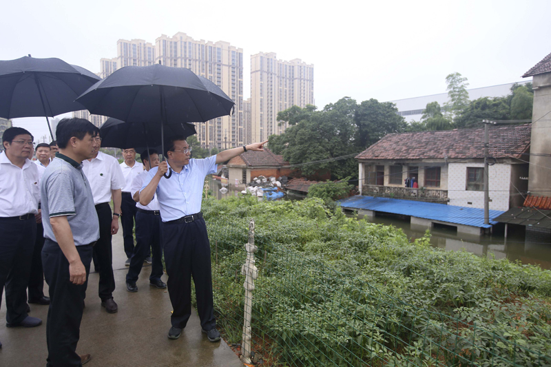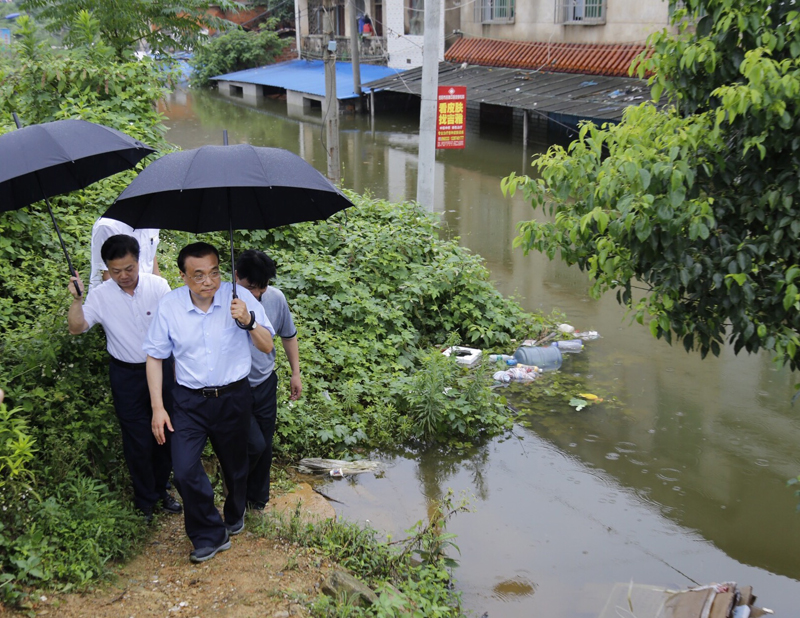 【李克強岳陽內(nèi)澇城中村察看災情】李克強5日下午視察湖南岳陽防汛。得知白石嶺城中村內(nèi)澇嚴重,積水最深時達4米多,總理一下火車就直奔這里。當聽到200余名居民已全部轉(zhuǎn)移安置,他甚感欣慰,轉(zhuǎn)而說,內(nèi)澇凸顯了城市建設中突出的短板,必須要加快地下管廊建設,盡快補上城市歷史欠賬。