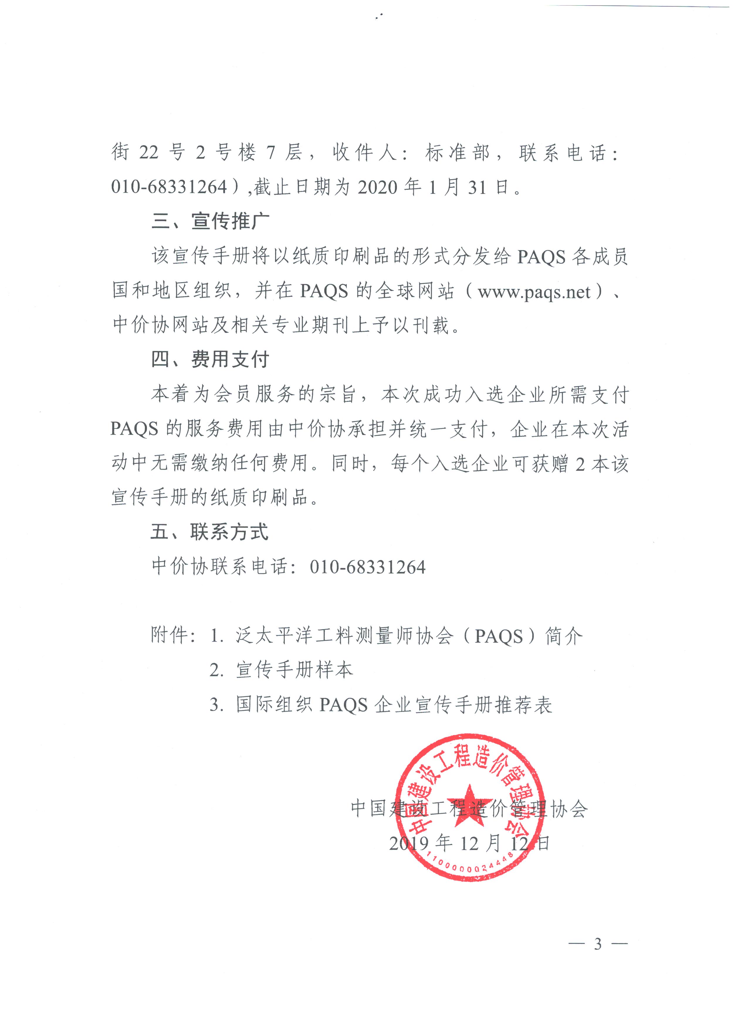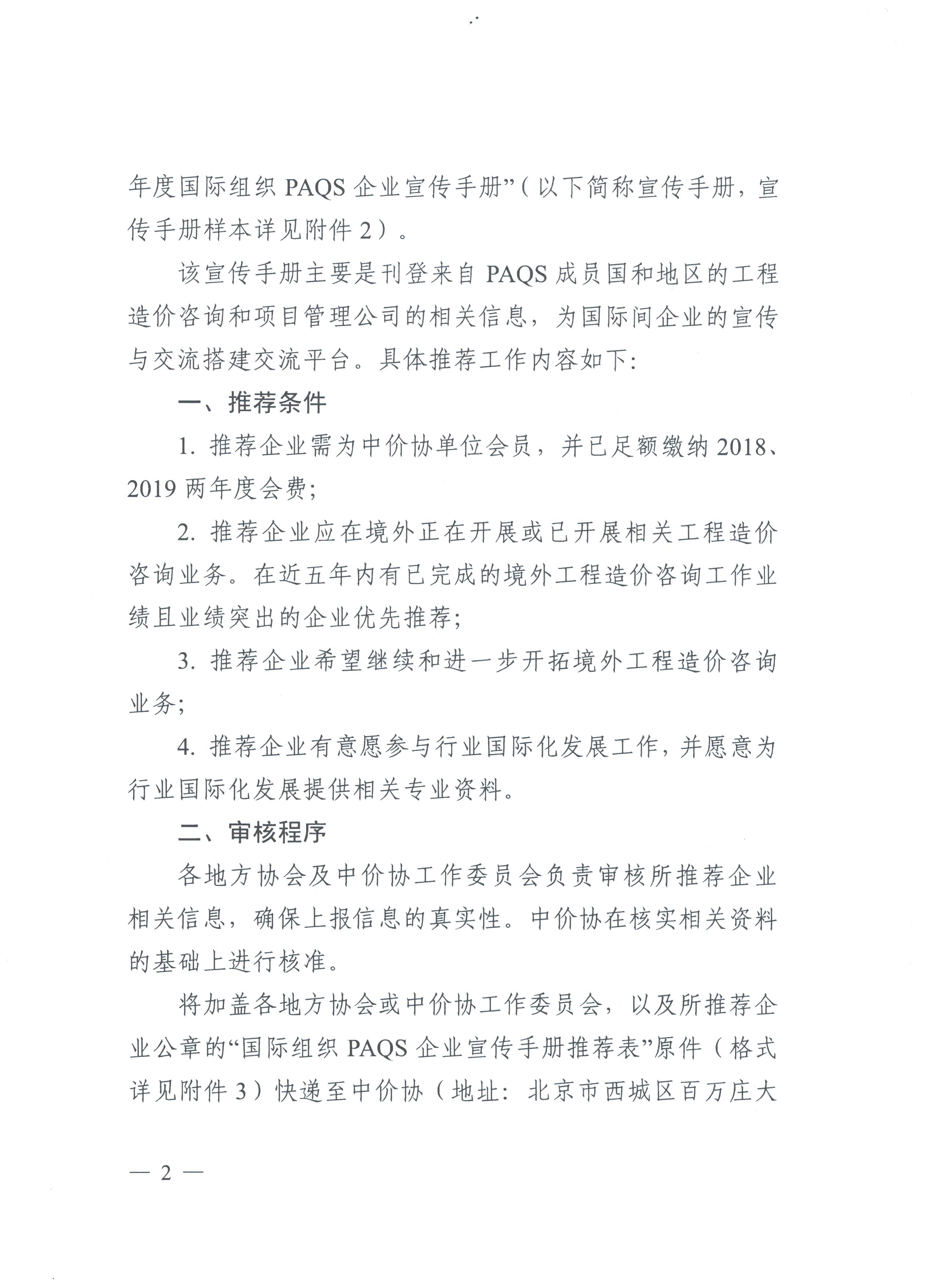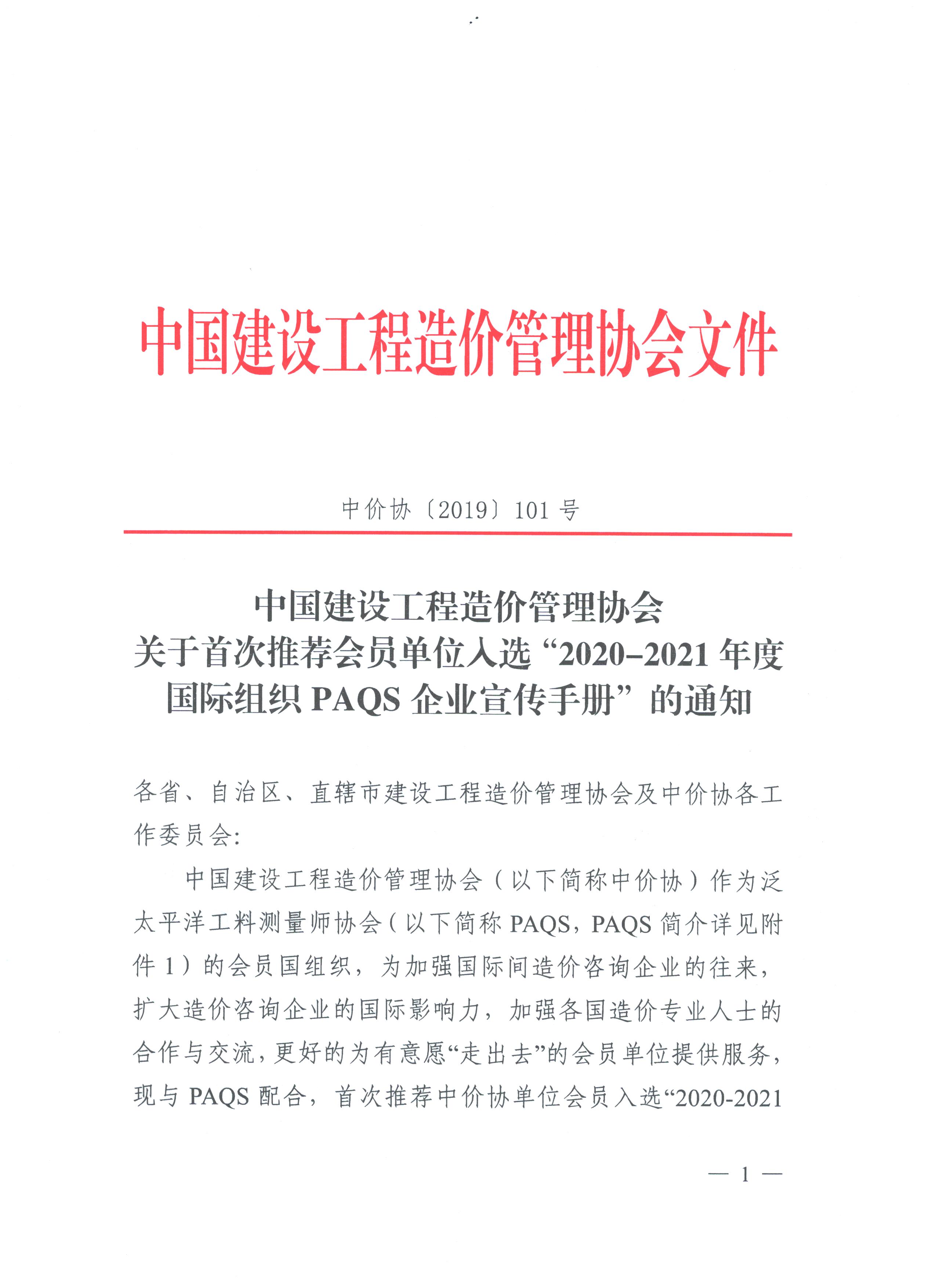 中國建設(shè)工程造價管理協(xié)會關(guān)于首次推薦會員單位入選“2020-2021年度 國際組織PAQS企業(yè)宣傳手冊”的通知