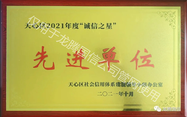 【喜報(bào)】龍騰國信榮獲長沙市天心區(qū)2021年度“誠信之星”先進(jìn)單位