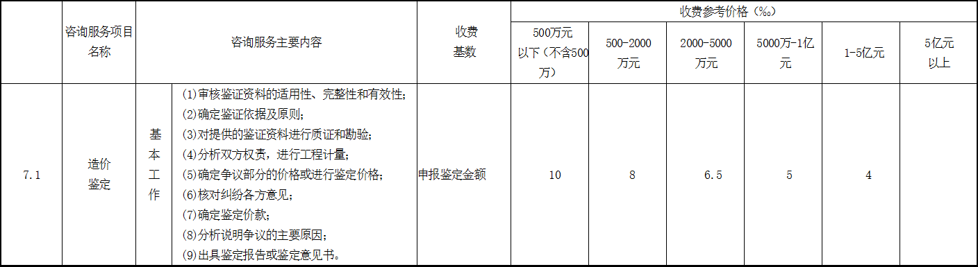 附件:造價咨詢行業(yè)咨詢服務收費參考價格表