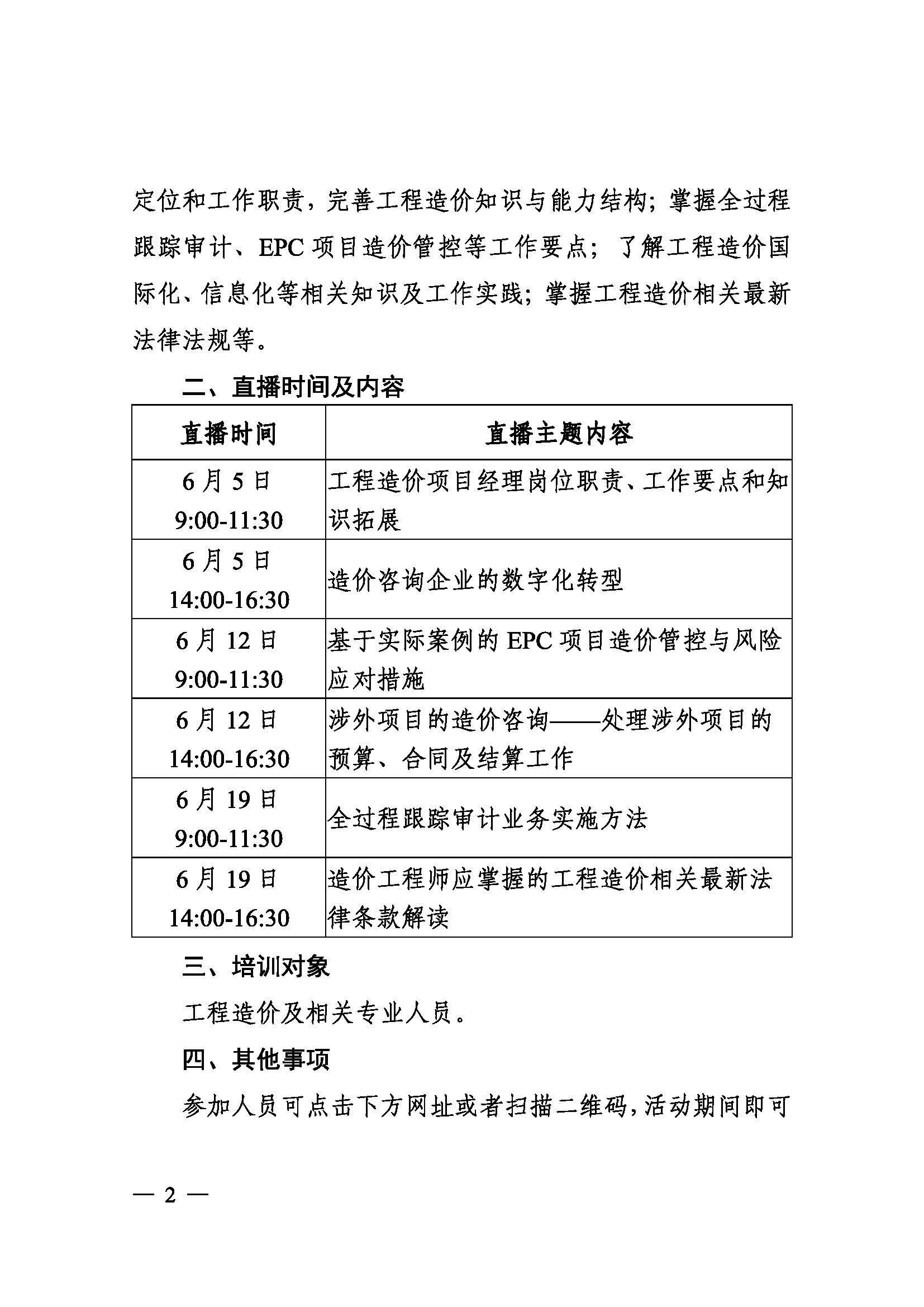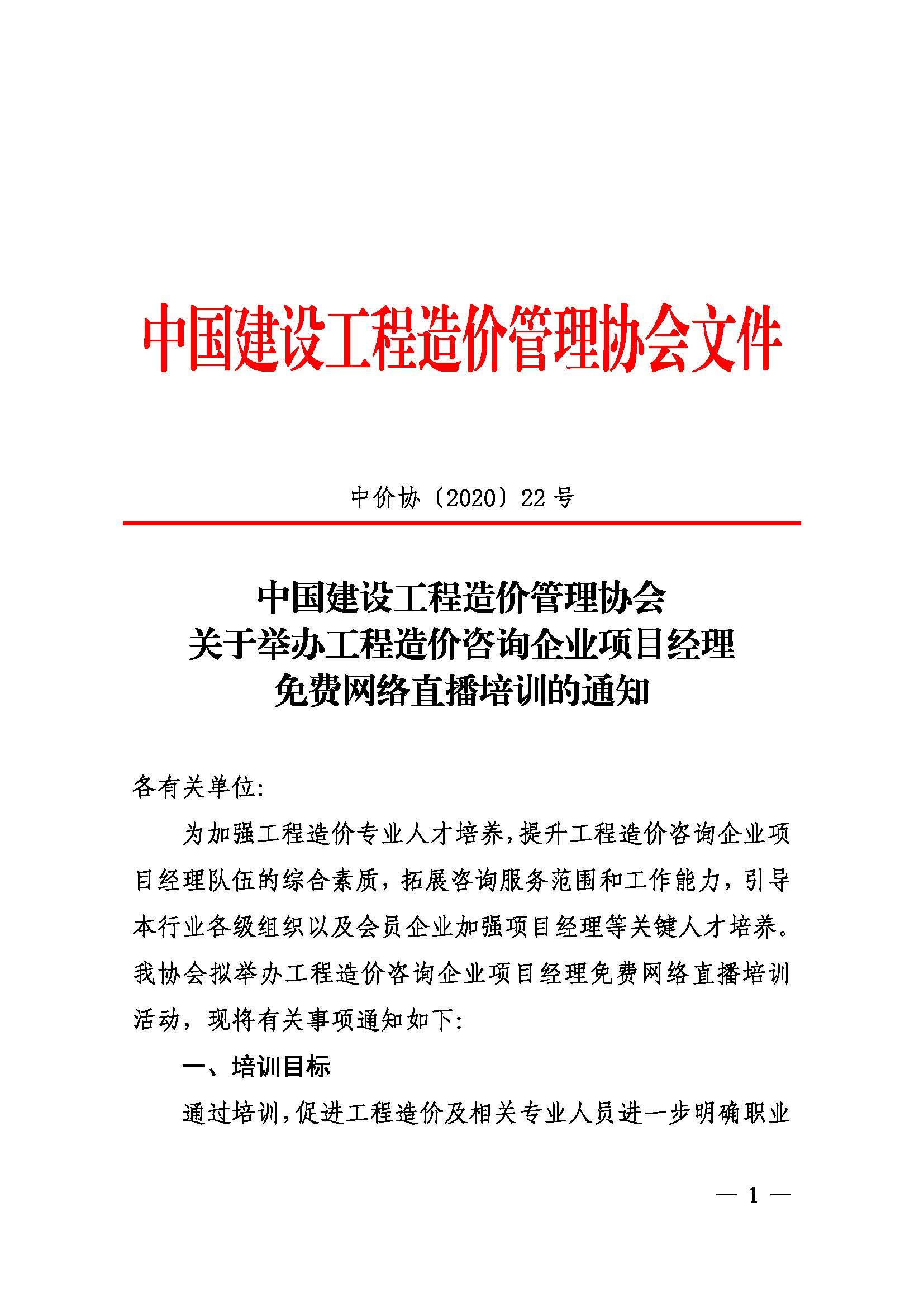 轉(zhuǎn)發(fā)中國建設(shè)工程造價管理協(xié)會關(guān)于舉辦工程造價咨詢企業(yè)項目經(jīng)理免費網(wǎng)絡(luò)直播培訓(xùn)的通知